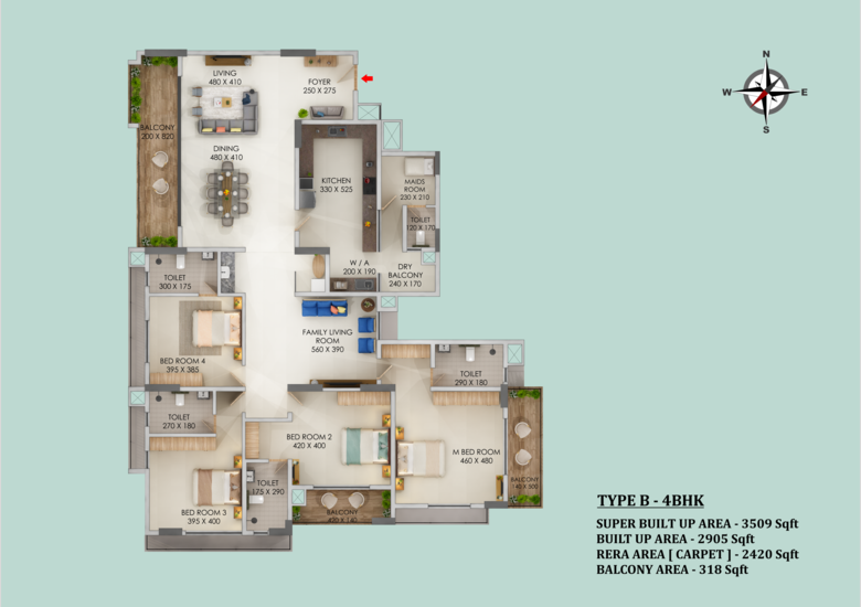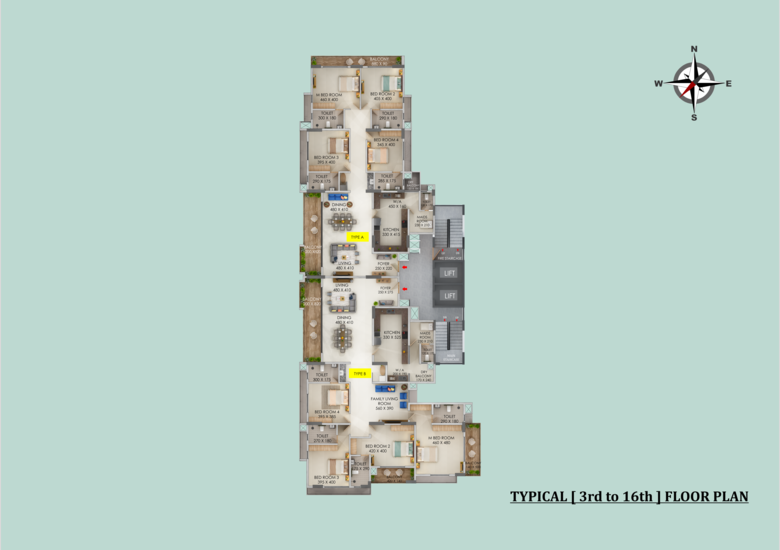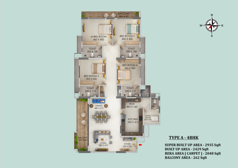 The available configuration at ABAD Signature is 4BHK Ultra-luxury apartments (2935 to 3509 Sq ft)