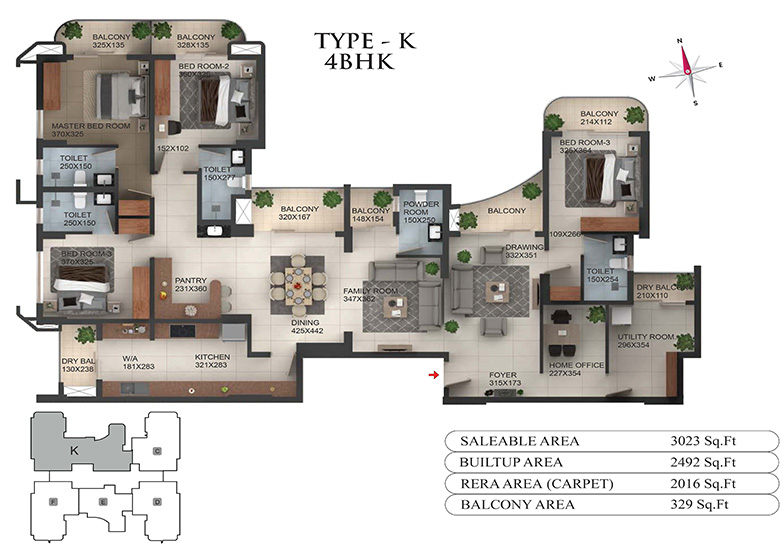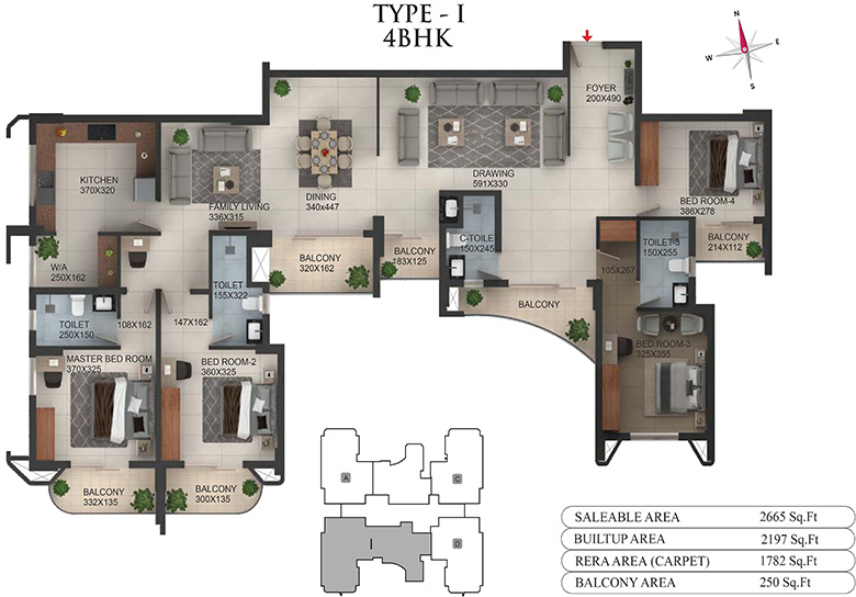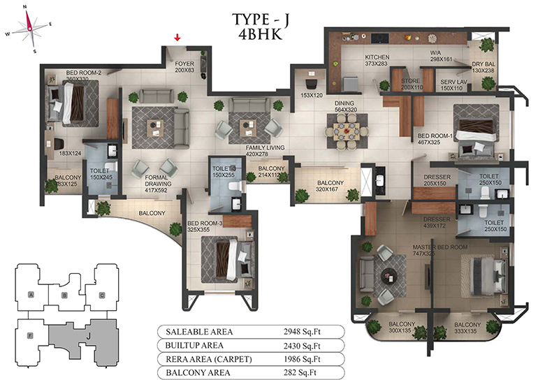 The project offers spacious 2, 3, and 4 BHK luxury apartments in Nettoor ranging from 1,228 sq. ft. to 2,948 sq. ft.
