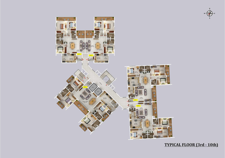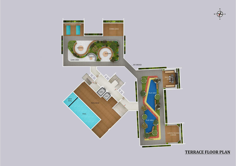 The key amenities at ABAD Sunrise Park are a Swimming Pool with a Kids Pool, a well-equipped AC Fitness center, a Children’s Play Area, a Barbeque area, a Jogging Track/Party Area, an AC Multi Recreational Hall, Indoor Games, and Zumba Area etc