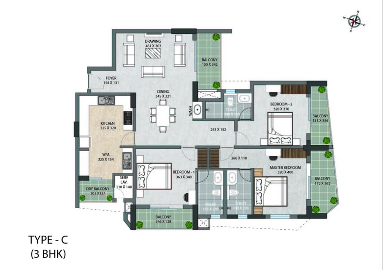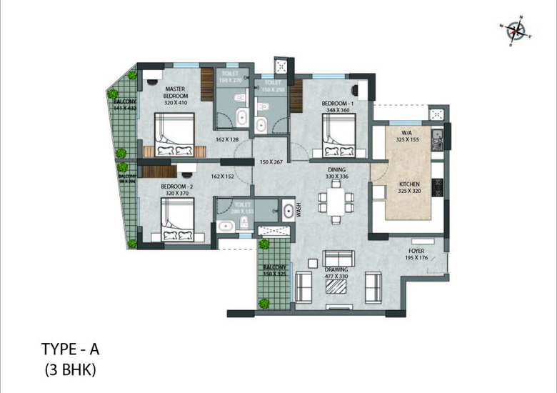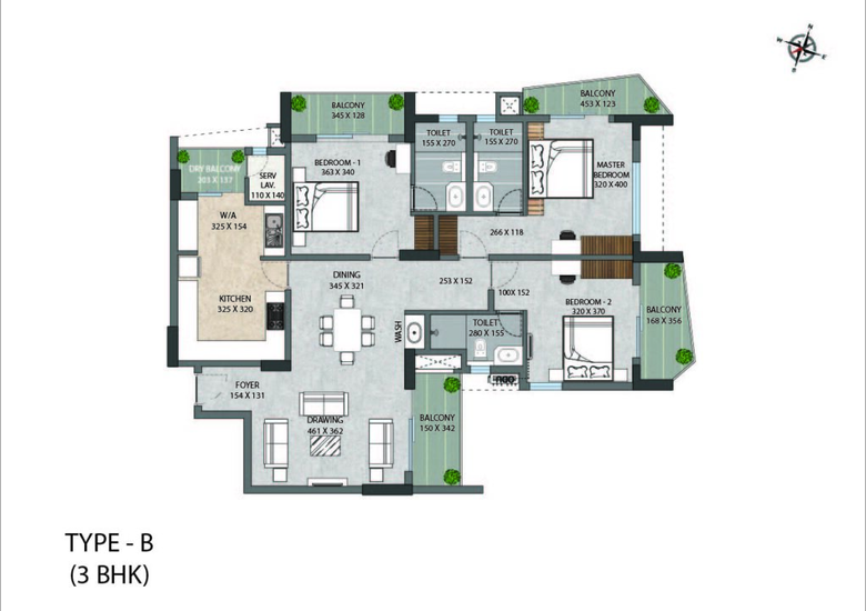 The available configuration at ABAD Luxuria is 3 BHK luxury apartments.